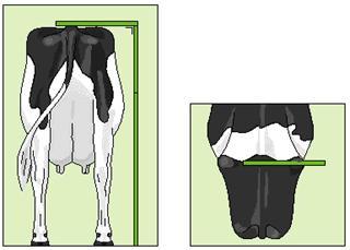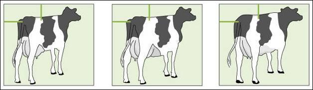 Atskaitos taškas: atstumas nuo viršutinės stuburo keteros iki liemens apačios, ties paskutiniu šonkauliu – giliausias taškas. Jis priklauso nuo gyvulio ūgio.