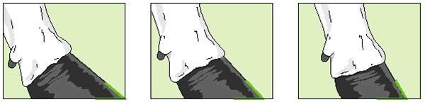 Jeigu nagos kampą išmatuoti sunku dėl per daug gilaus kraiko, mėšlo sluoksnio ar nagų tvarkymo – galima remtis vertinant tik apynagės plaukų linijos kampą.